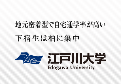 2005年につくばエクスプレスが開通したことで、下宿の選択肢は広がりました。とはいえ、千葉県でも有数のターミナルであるJR常磐線柏駅を最寄りとする一帯に住んでいる学生が依然として多いようです。柏からでしたらバスや自転車でも通学できます。そのほか、東武野田線豊四季駅からは徒歩で、またつくばエクスプレスの流山おおたかの森駅からは無料のスクールバスを利用できます。