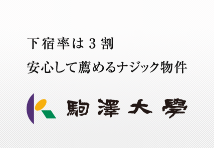 学生の約7割は自宅通学ですが、残りの3割は地方出身者で下宿生活です。本学は仏教系の大学であることから、宗門の子弟を育成する修行道場として学生寮もありますが、多くの学生は下宿を希望します。下宿の斡旋は、本学が立ち上げた事業会社「(株)KUサポート」に業務委託しています。「(株)KUサポート」ではナジックさんを含めた信頼できる学生住宅紹介専門会社3社と提携し紹介しています。入学者が決まる12月や2・3月には学内で「部屋探し相談会」も実施しています。多くの学生は、東急沿線か駒沢キャンパスの徒歩圏内に住んでいます。多摩川を越えると家賃が安くなることから、二子玉川以降中央林間寄りに住む学生もいます。部活動をしている学生の下宿は、活動場所である玉川キャンパス周辺に集中しているようです。玉川キャンパスから駒沢キャンパスまでは自転車でも通えることから、拠点にしやすく、また副都心線が開通したことで、学生の居住範囲が広がっているとも聞いています。
