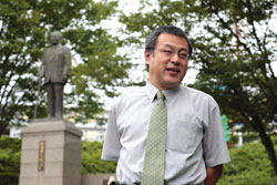 わが校は湘南、伊勢原、沼津など日本全国5ヵ所に校舎があり、全校舎を合わせて約2万6千人の学生がおります。その内の2万人ほどが、この湘南校舎に通っています。学生は全国各地からやって来ますが、東海大学付属高校が福岡、熊本、山梨、長野、北海道、関東の各地と全国に14校あり、そうした地域から比較的多くの学生が集まってきます。付属高校から東海大学に進学する生徒は、割合にすると三分の一ほどです。北海道や九州の付属高校に通う高校生は、上京したときに必要な下宿代や生活費などを考慮して、同地域にある東海大学に進学する学生も多いですね。